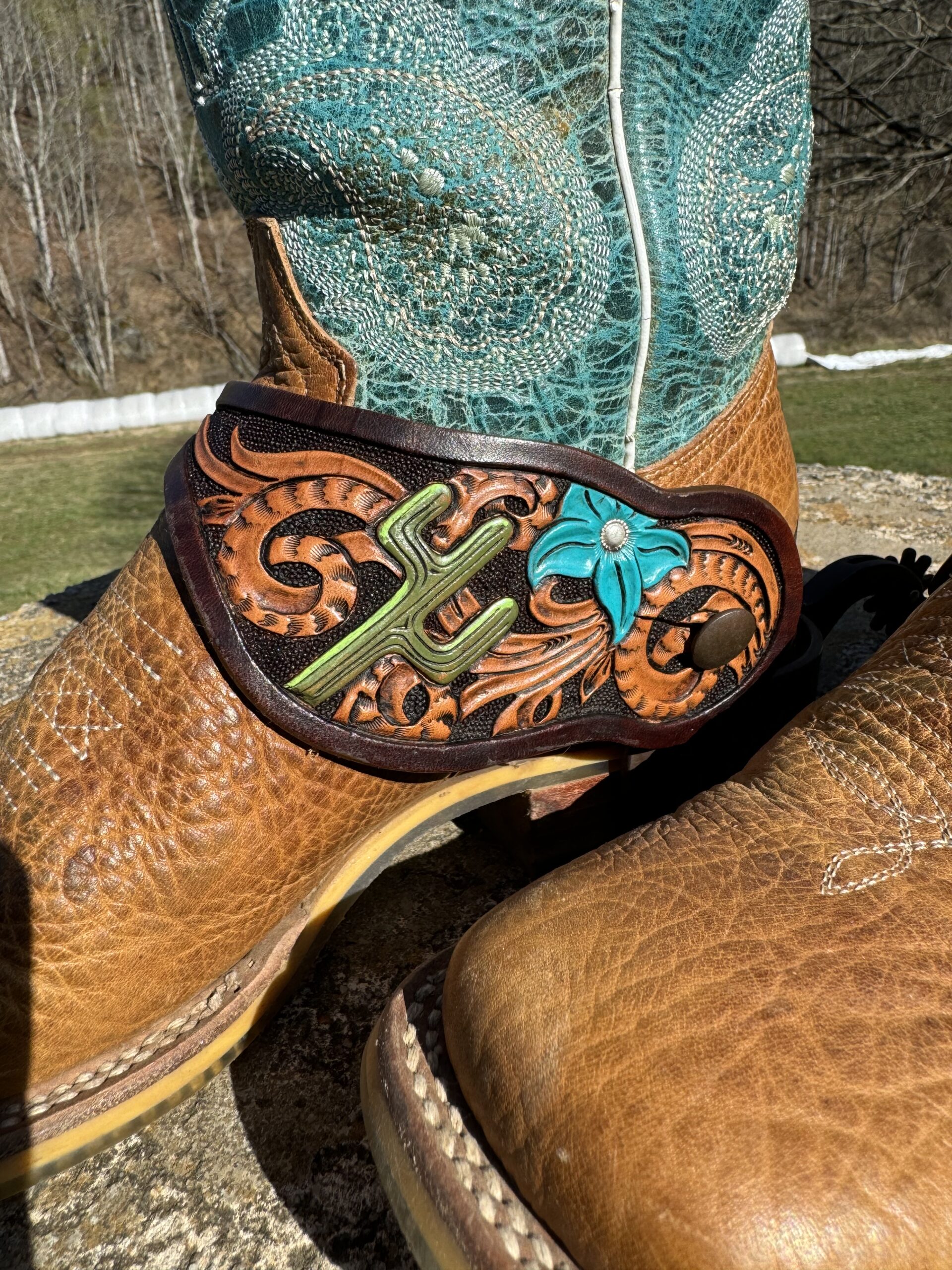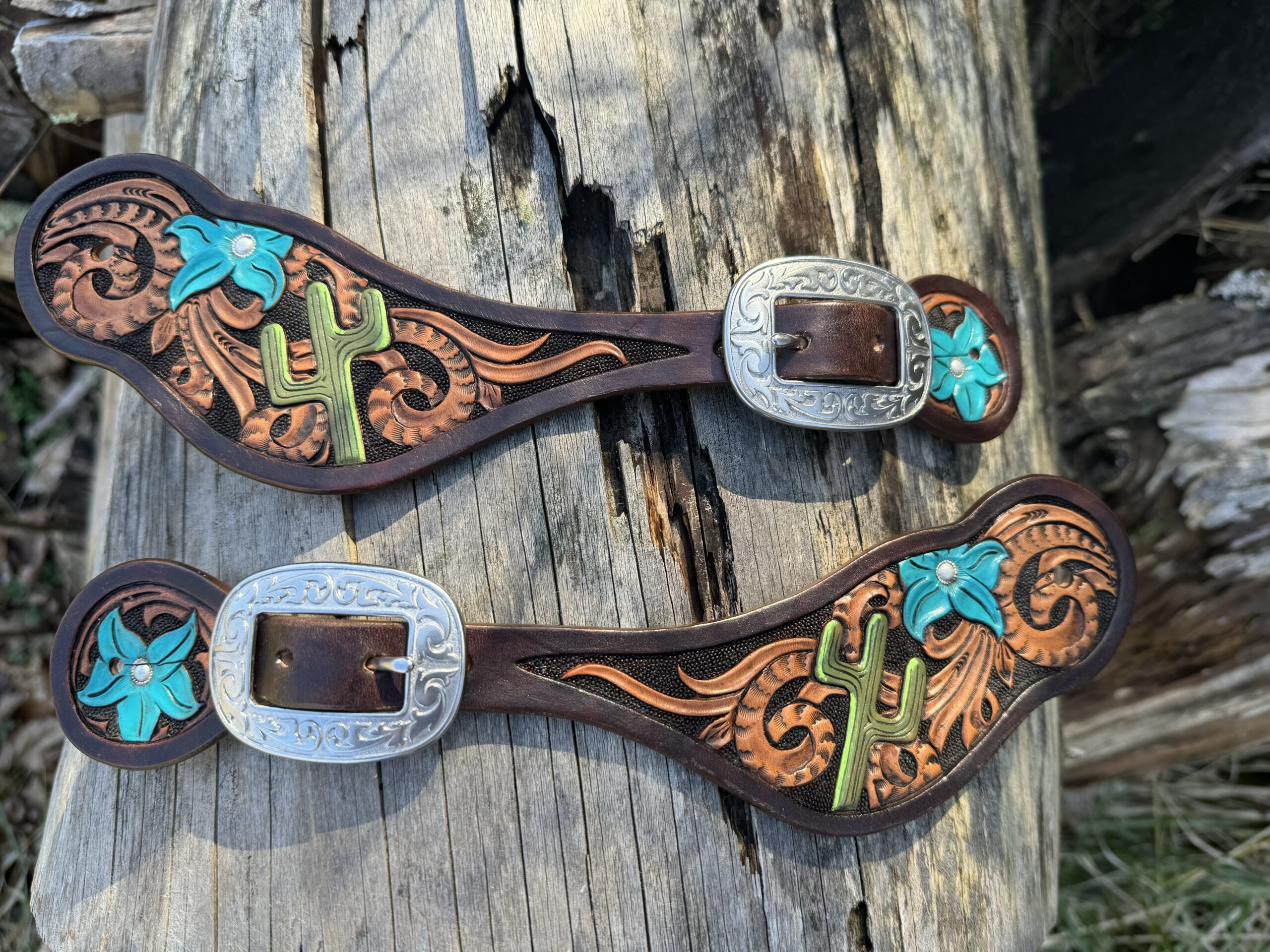 Available in a couple different sizes and shapes, these can be customized in the small space available with anything you can imagine. Â Please contact us for your spur strap needs.