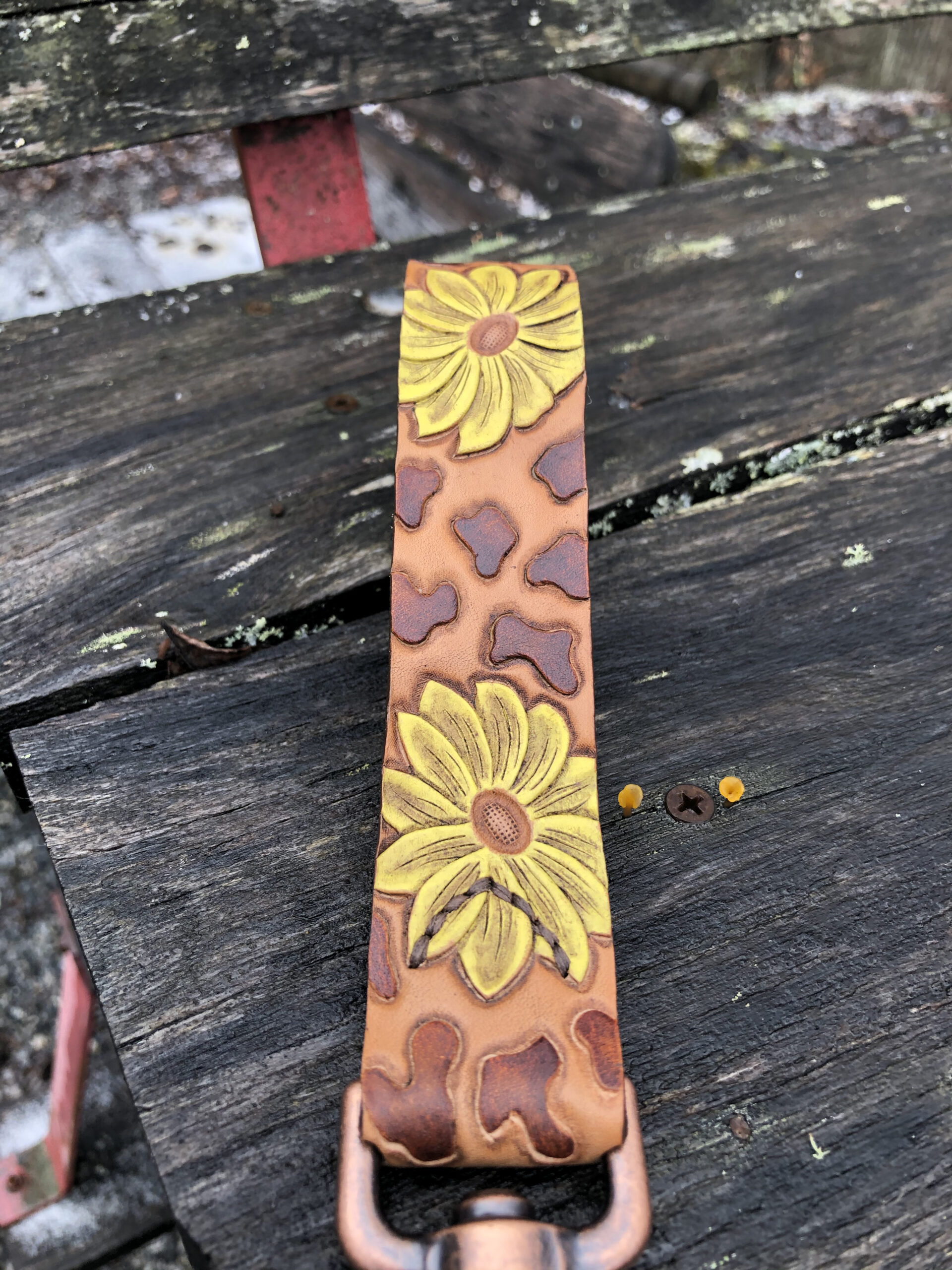 These beautiful keychains are made from Hermann Oaks leather usually from scrap ends of belts that we’ve made. They can be customized with anything, so please contact us for your idea on how we can make the perfect keychain for you.