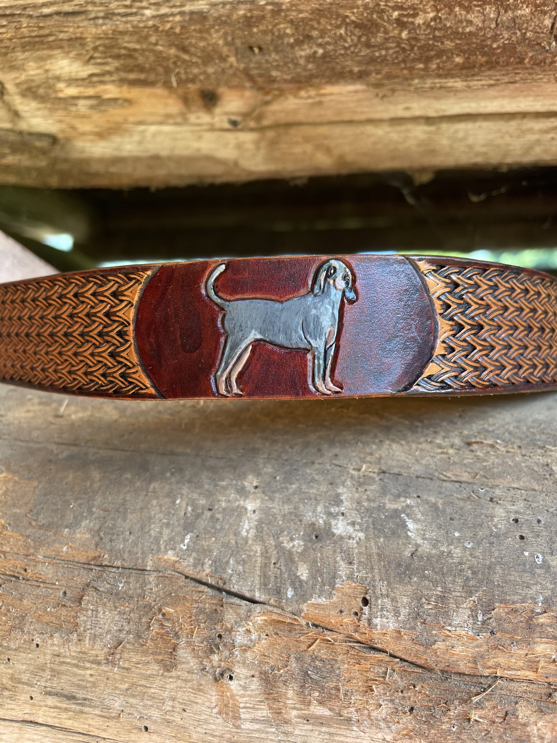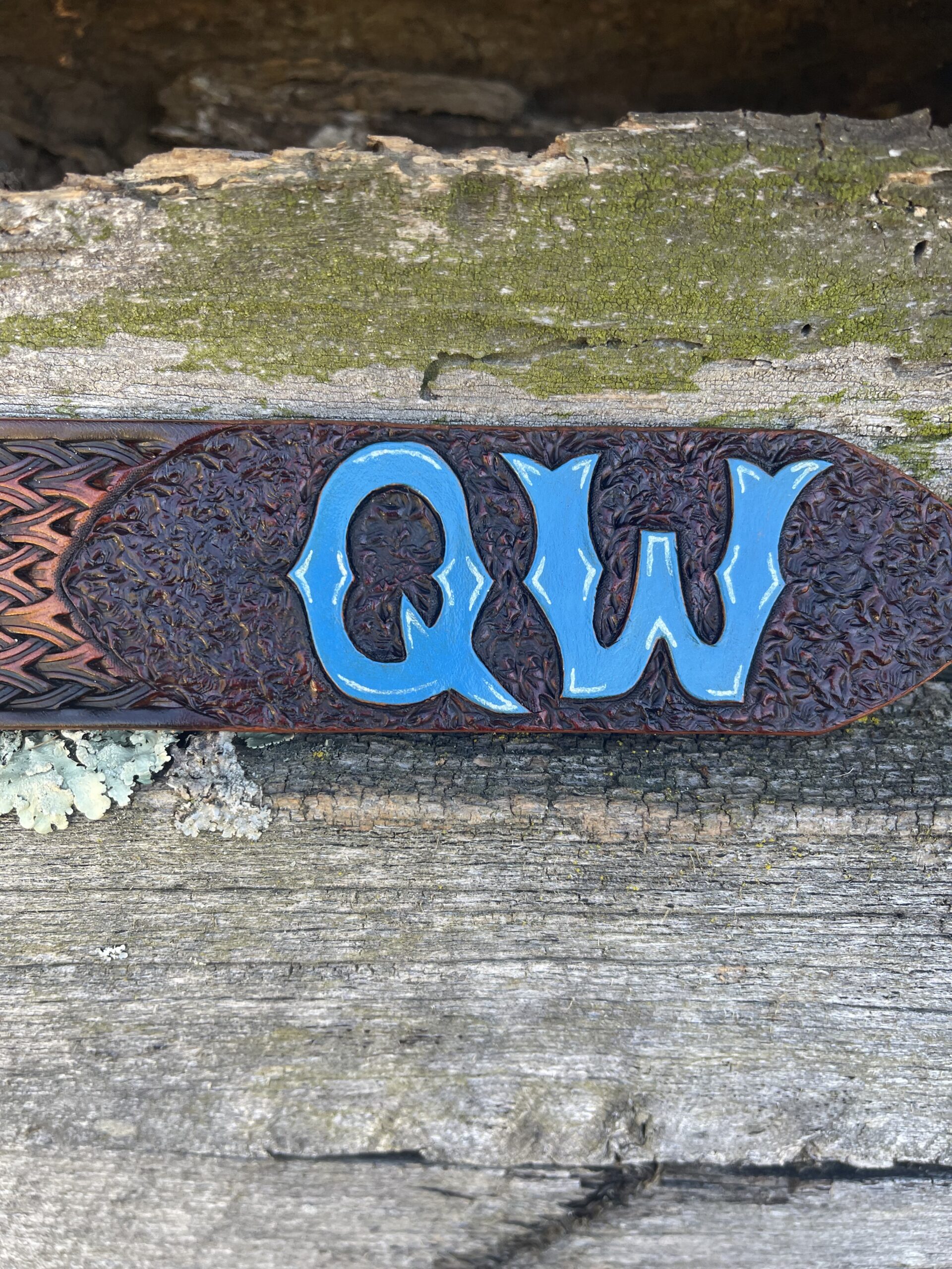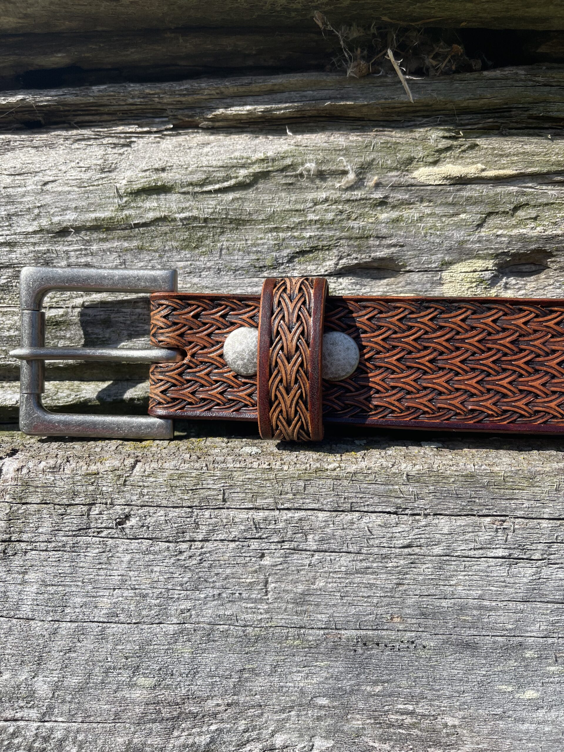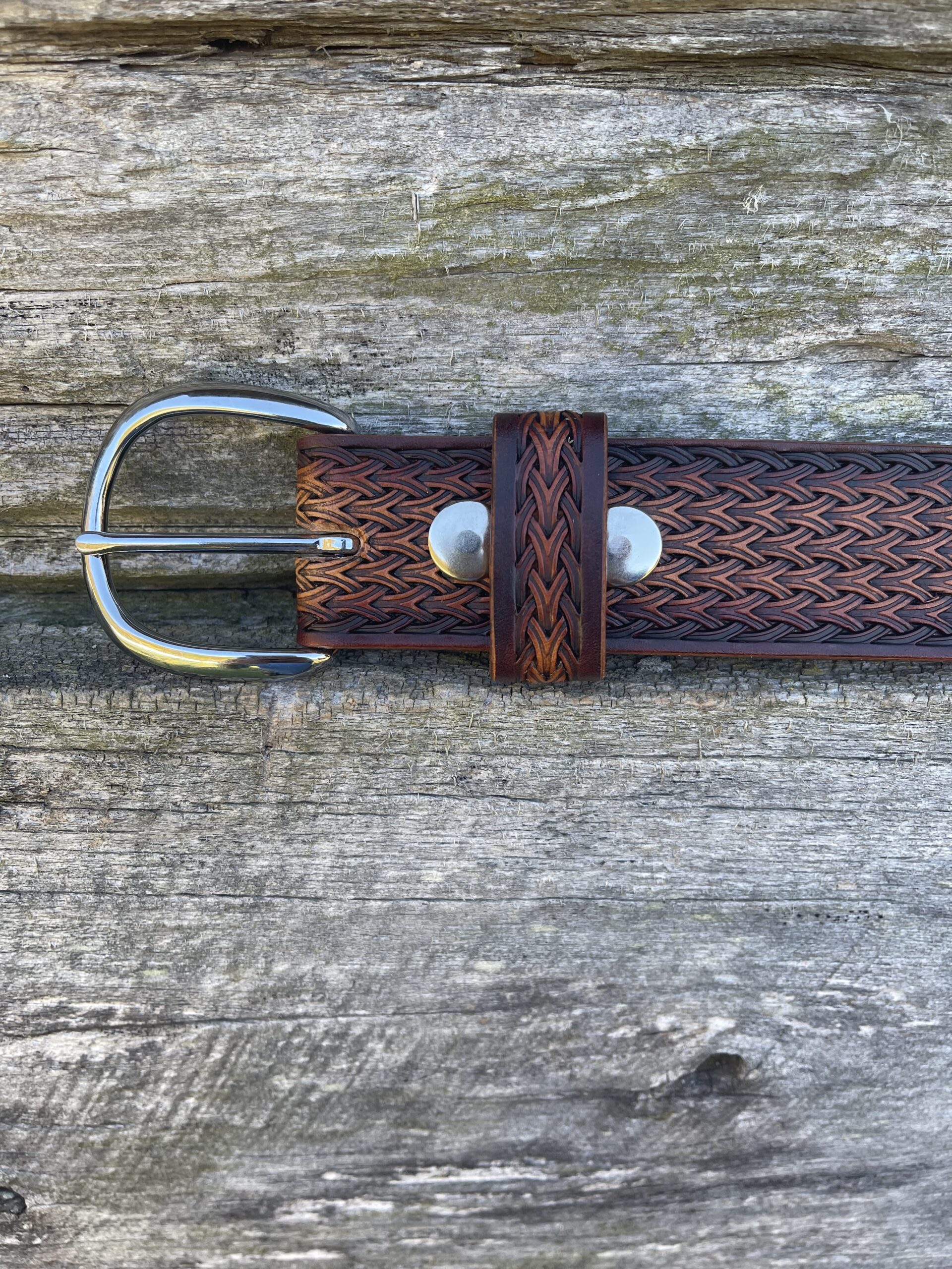 Custom Tooled Belt W/No Stitching and Plain Buckle