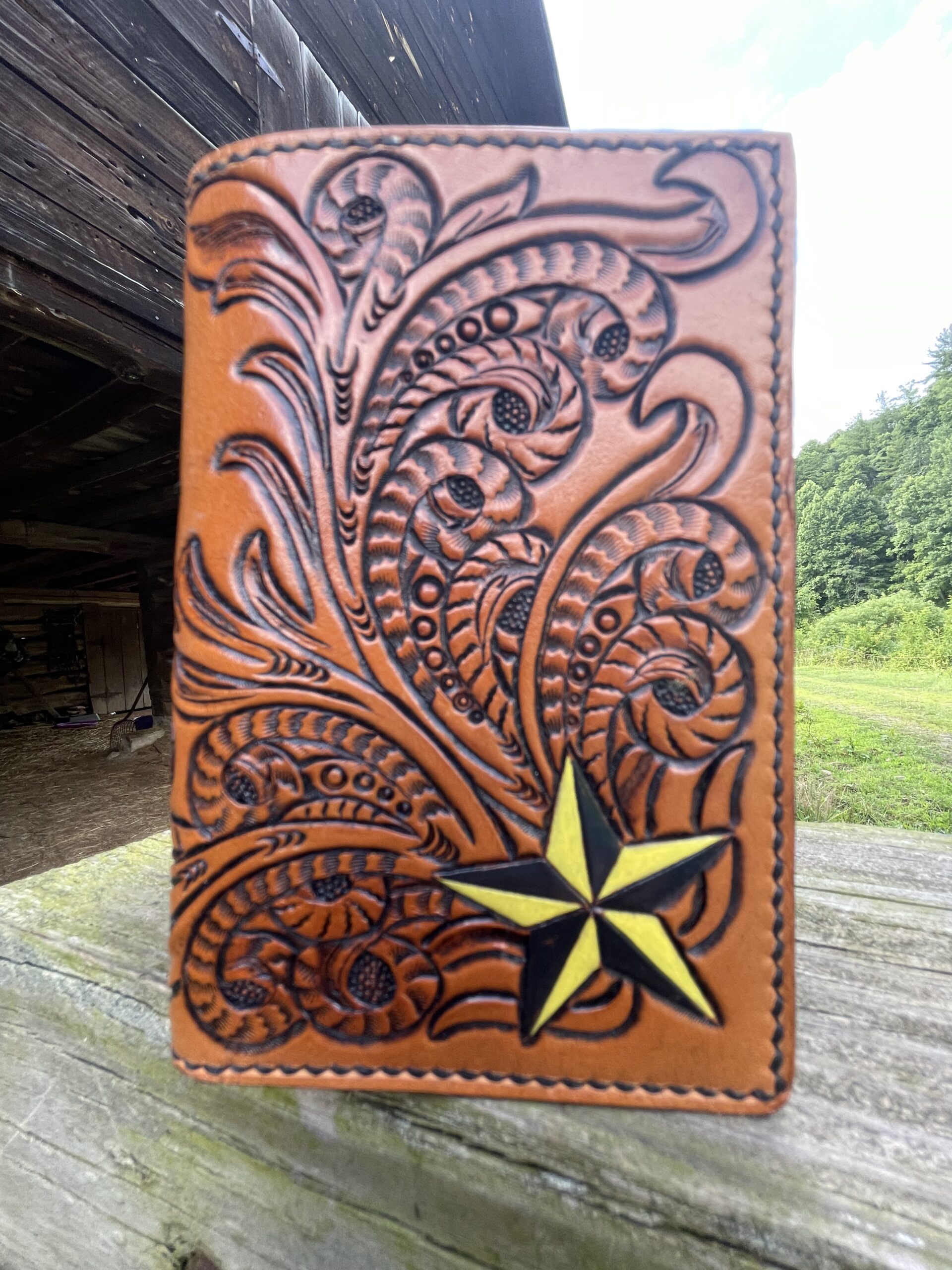 Tri-Fold wallets offer you a chance to get 3 sides customized or one large tooled area.  Please contact us to see how we can meet your needs.