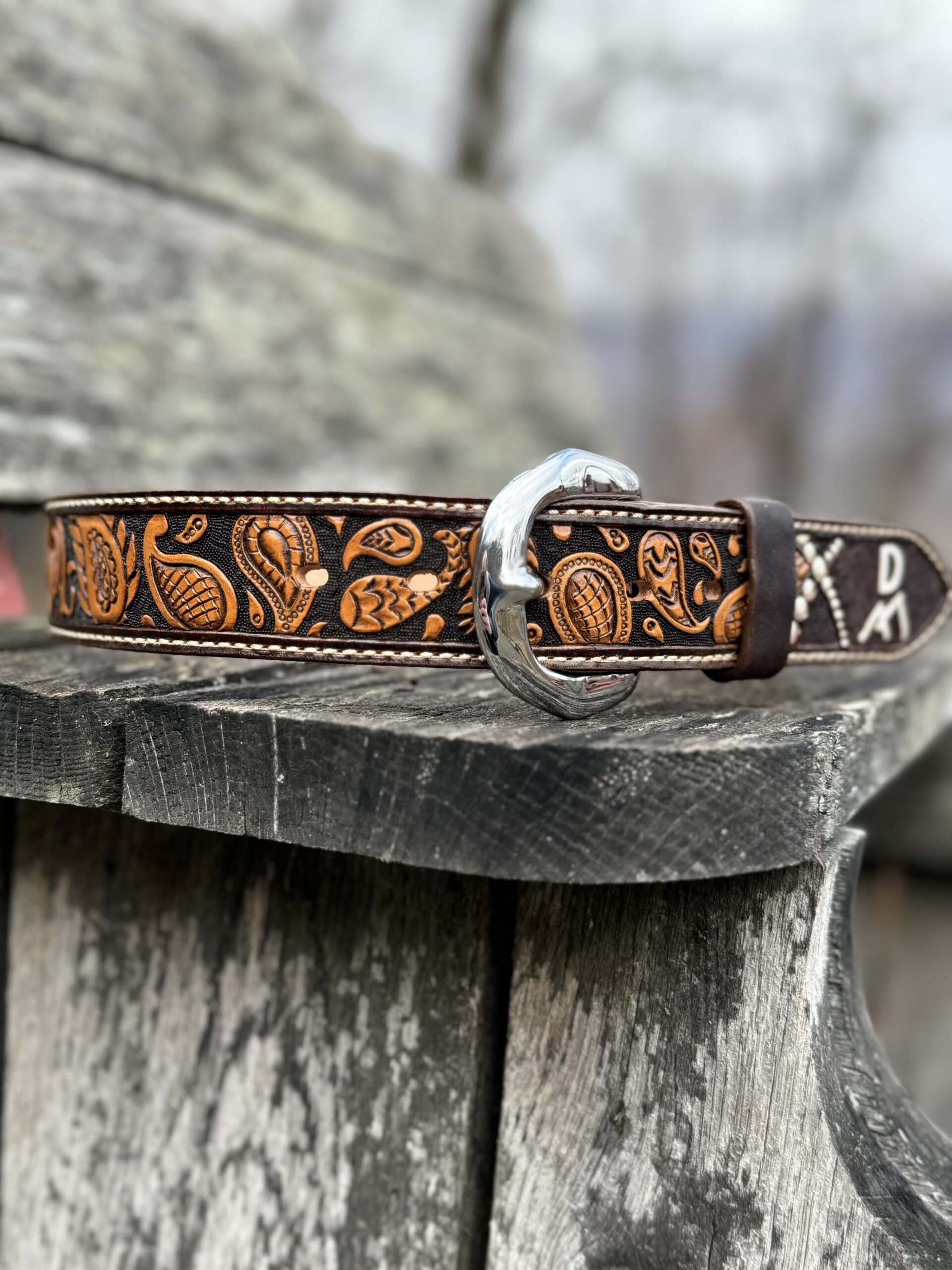When it comes to custom work, prices can very greatly depending on the buckle you choose to put on your belt.  The price listed is for a standard buckle.  If you would like a big western style buckle please let us know and we’ll give you a price for it.  We can put pretty much whatever you want on your custom belt!  Just let us know what you’re looking for and we’ll be happy to come up with something that NO one else will have!