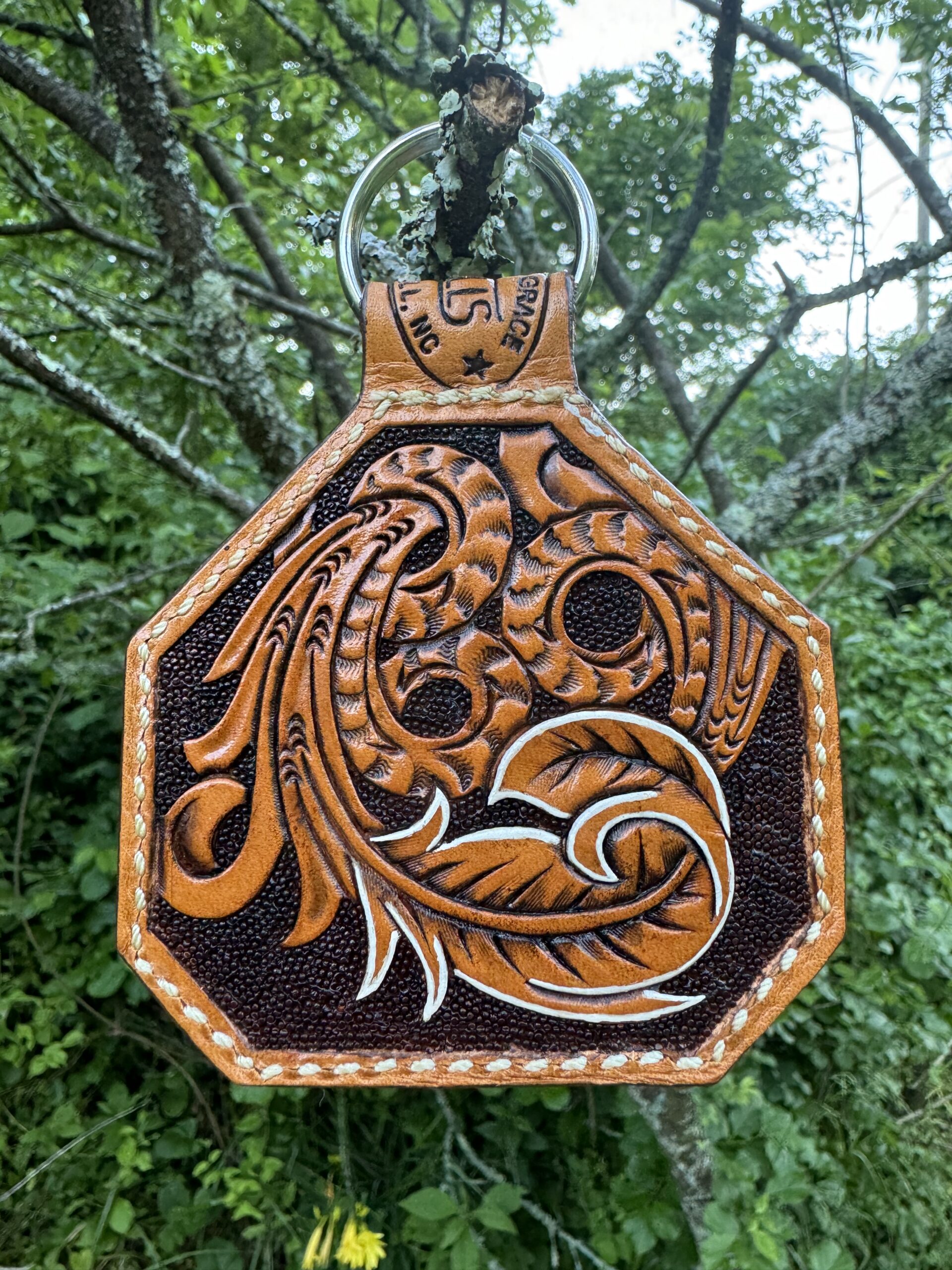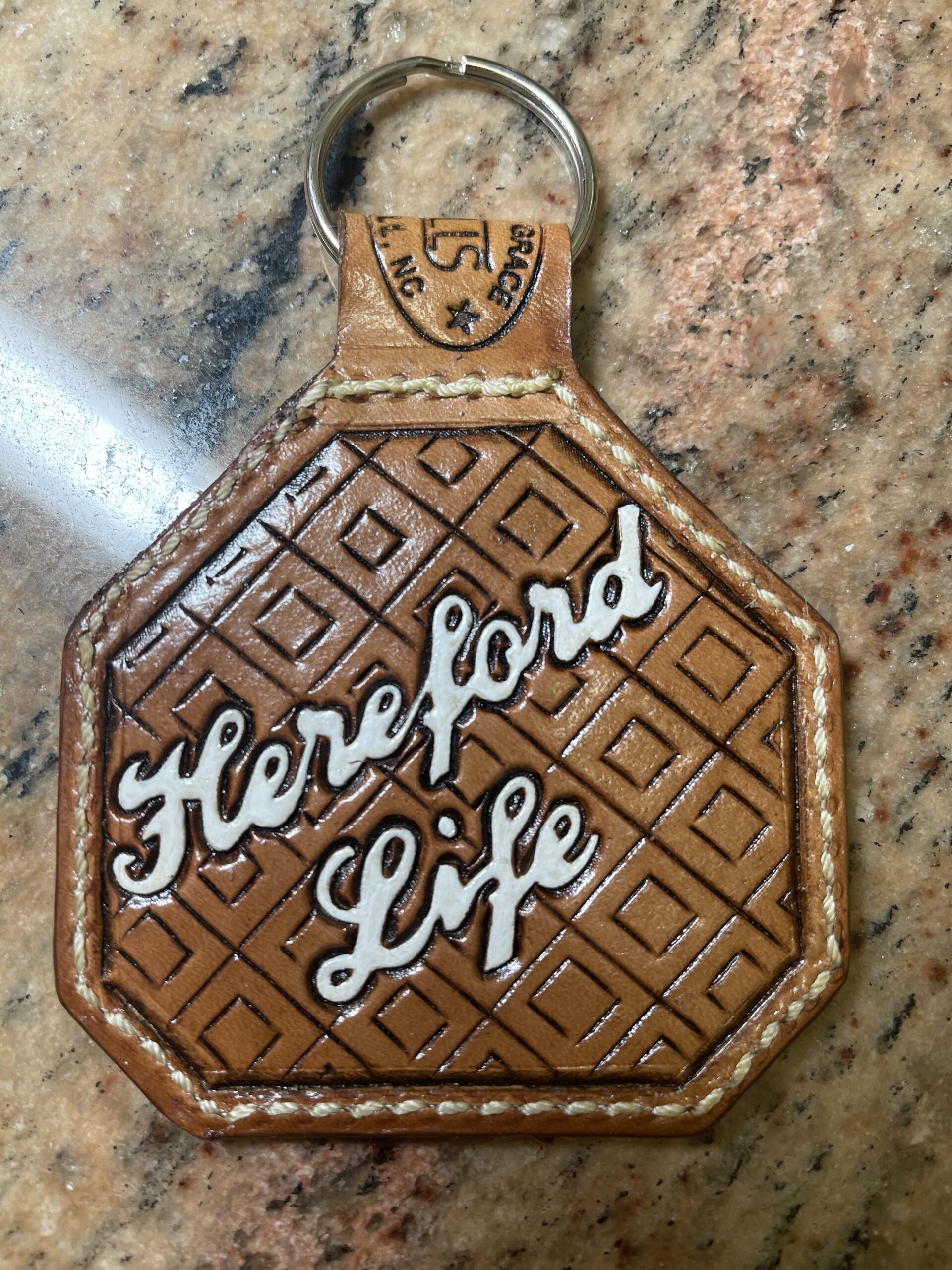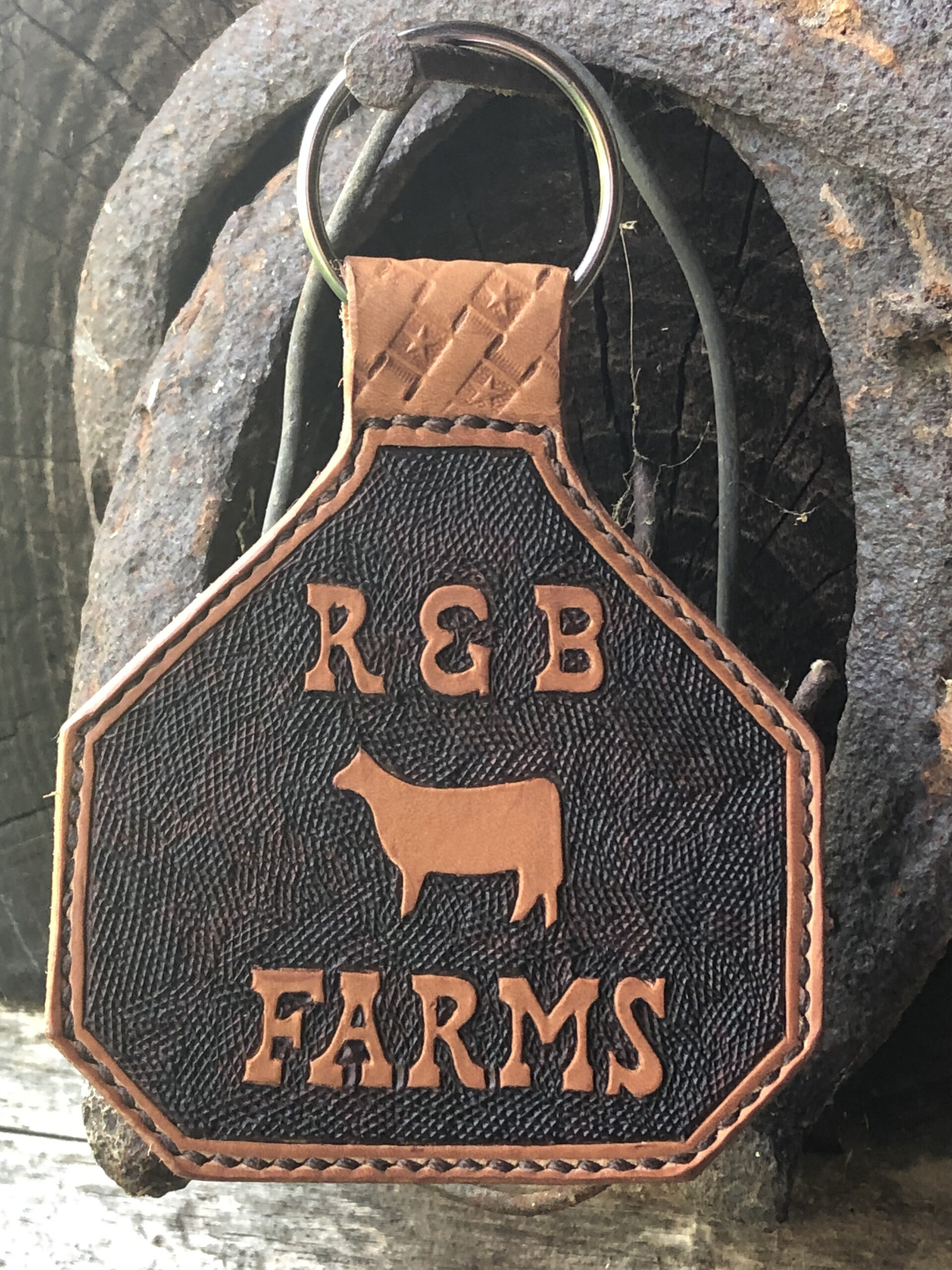 Large ear tag keychains make a lot of room for customization! Â Please contact us with your ideas for your next keychain. Â For those of you that know size, this is the actual size of a large ear tag that is put in cattle’s ears.