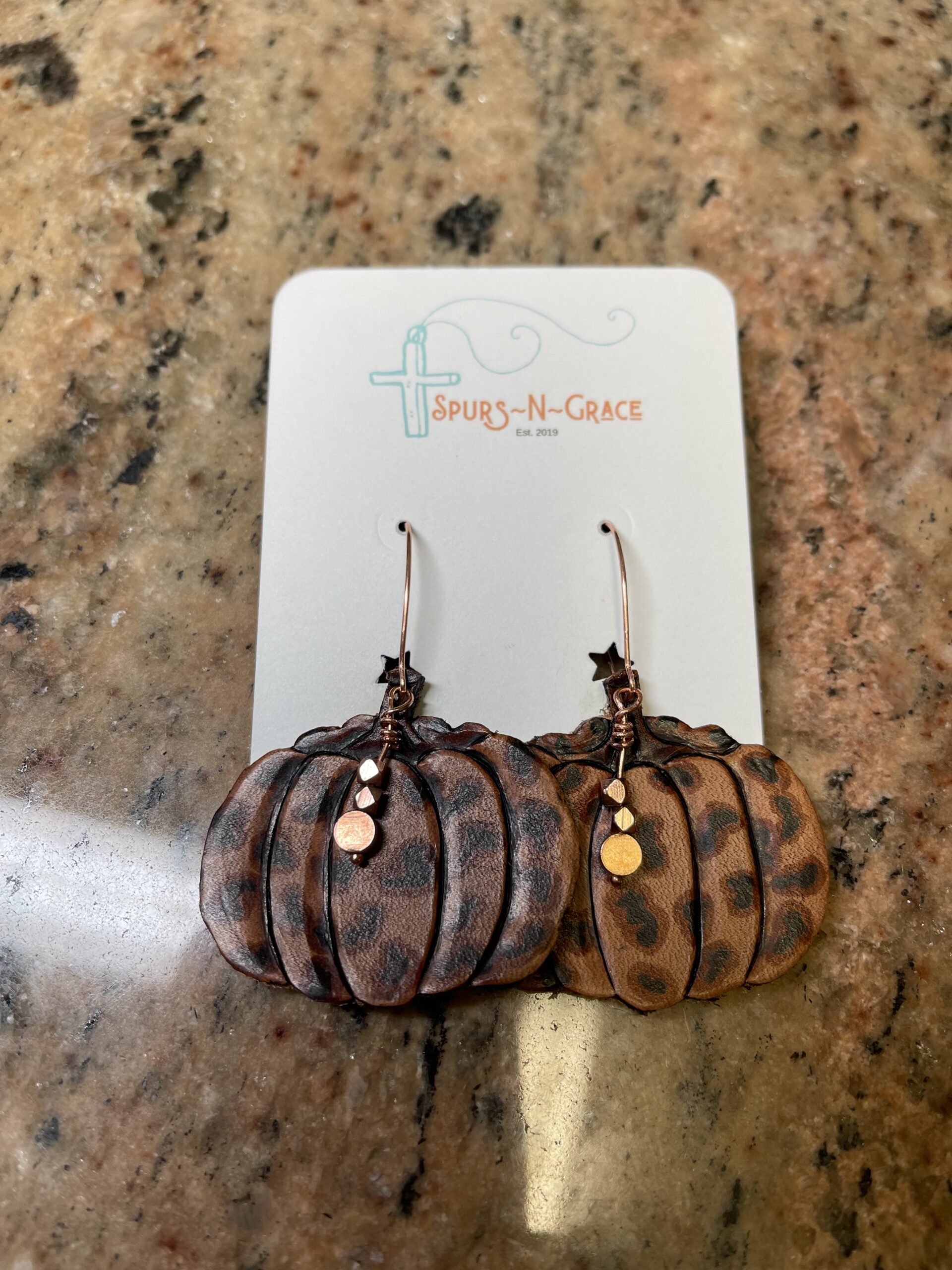 Leopard Print Holloween Pumpkin Earrings w/Copper