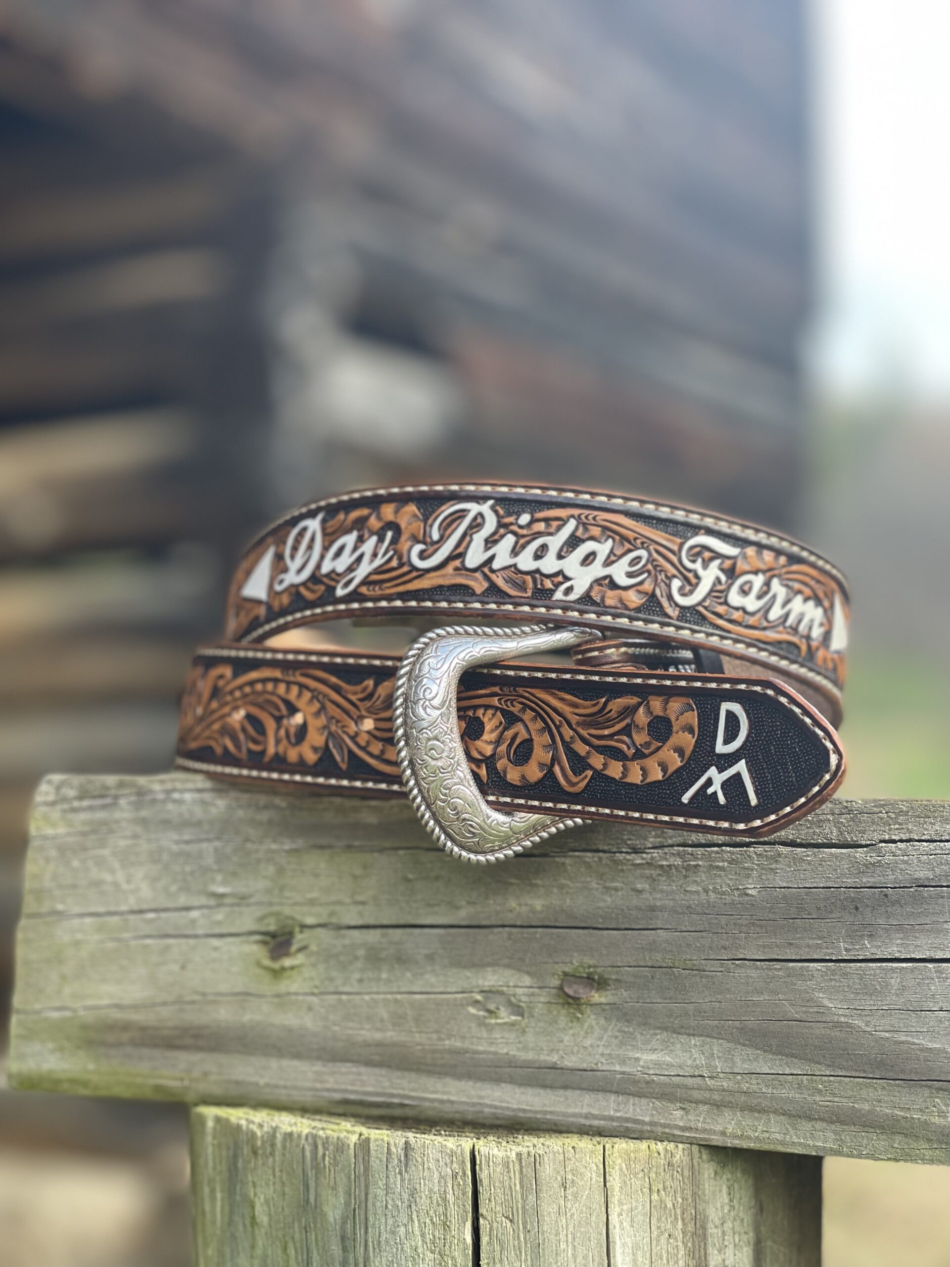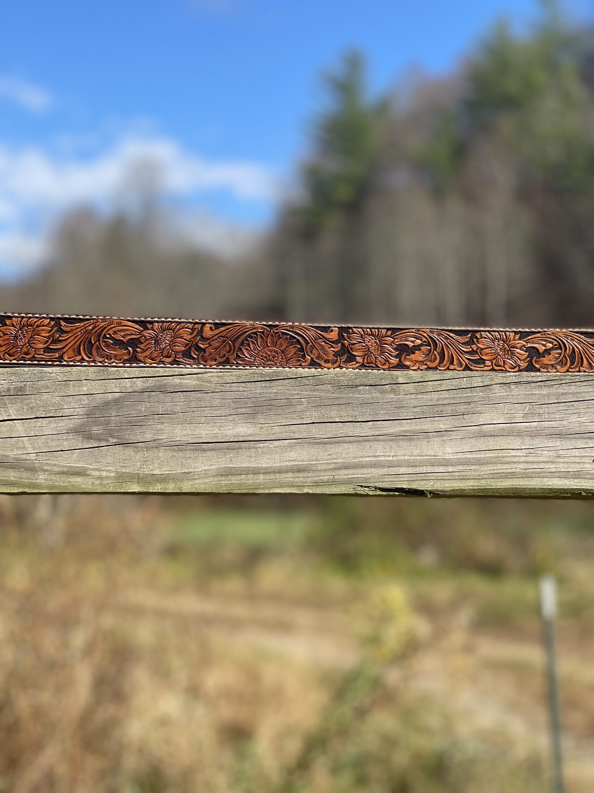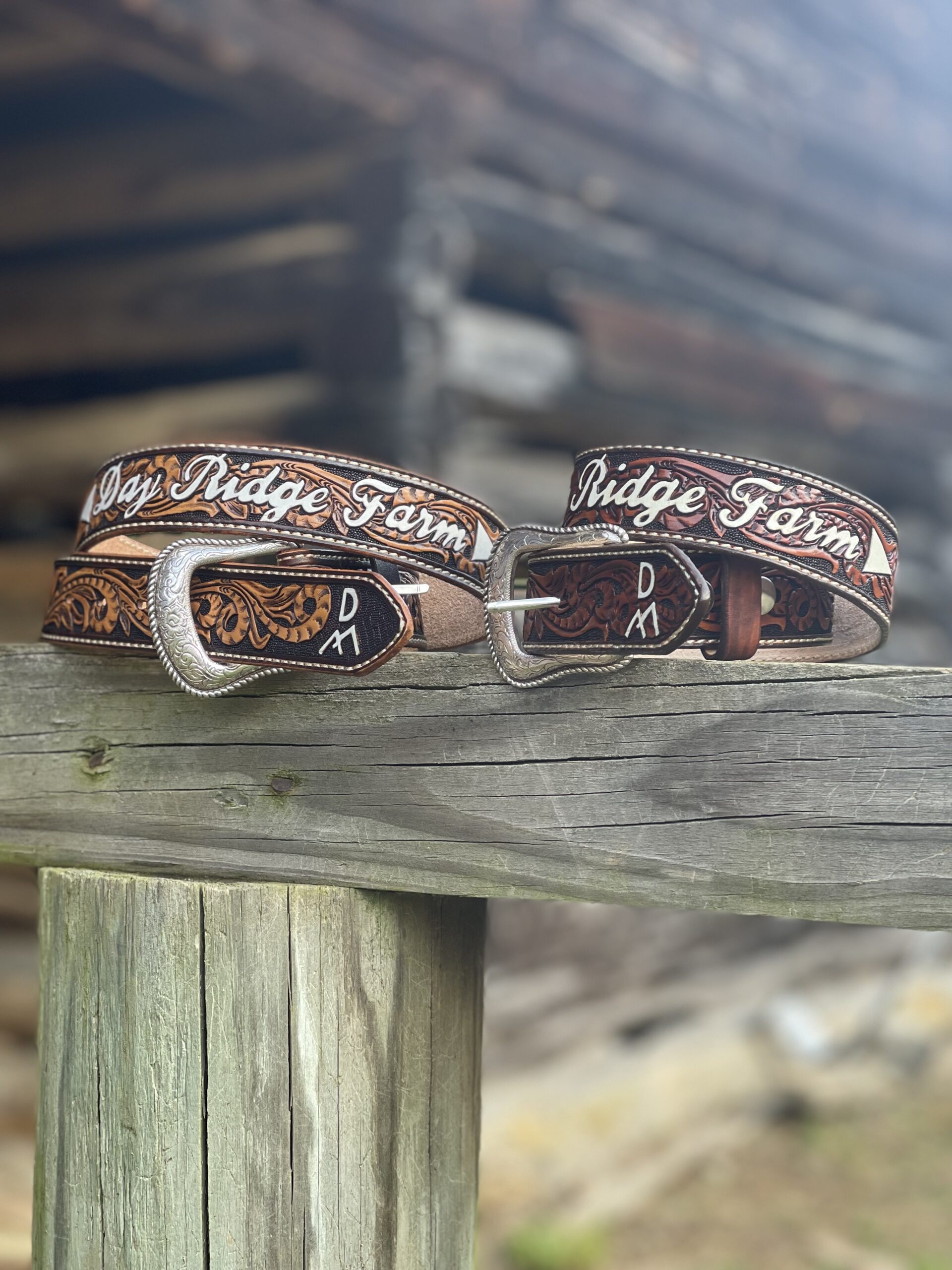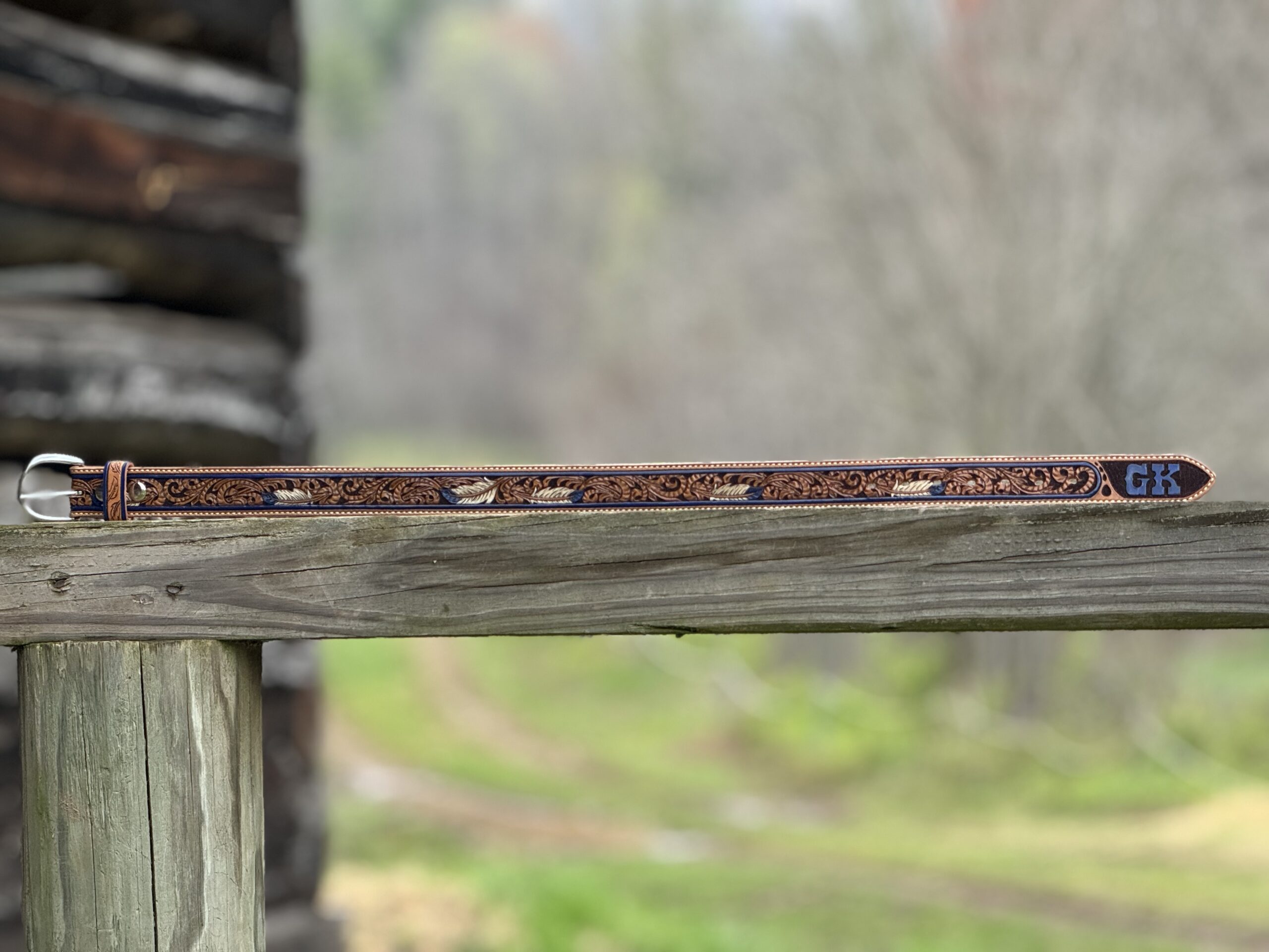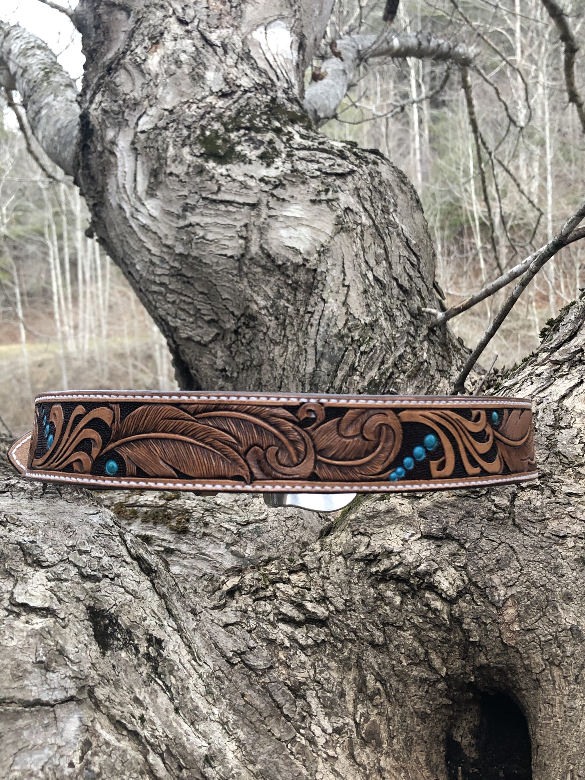 The Works!! Custom tooled belts with stitching and western style buckle.