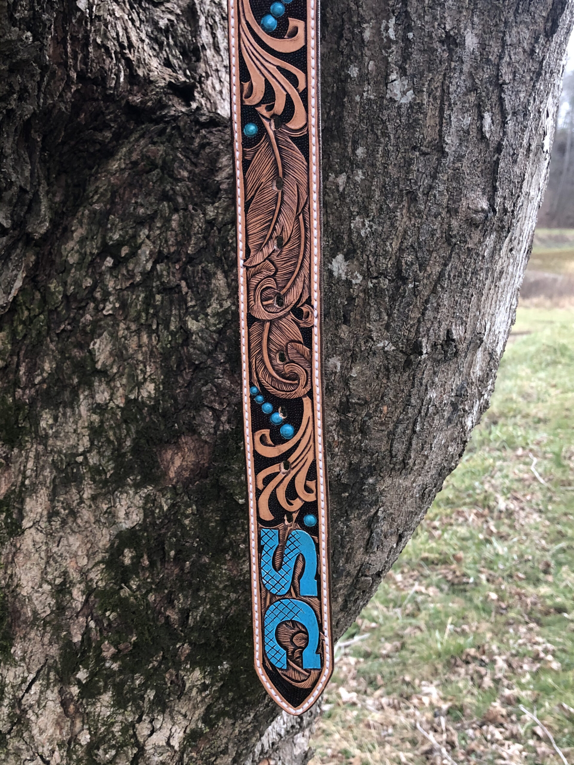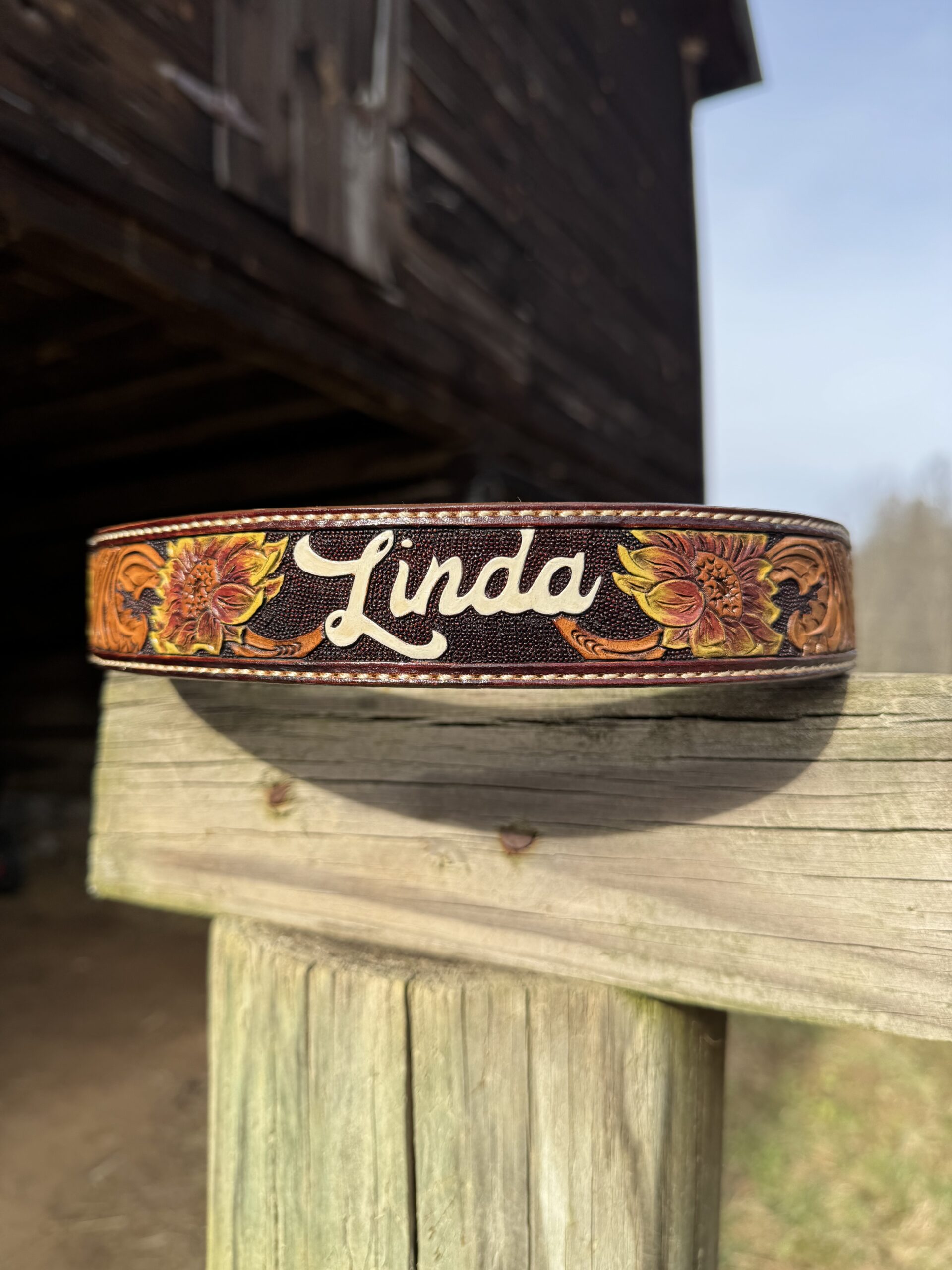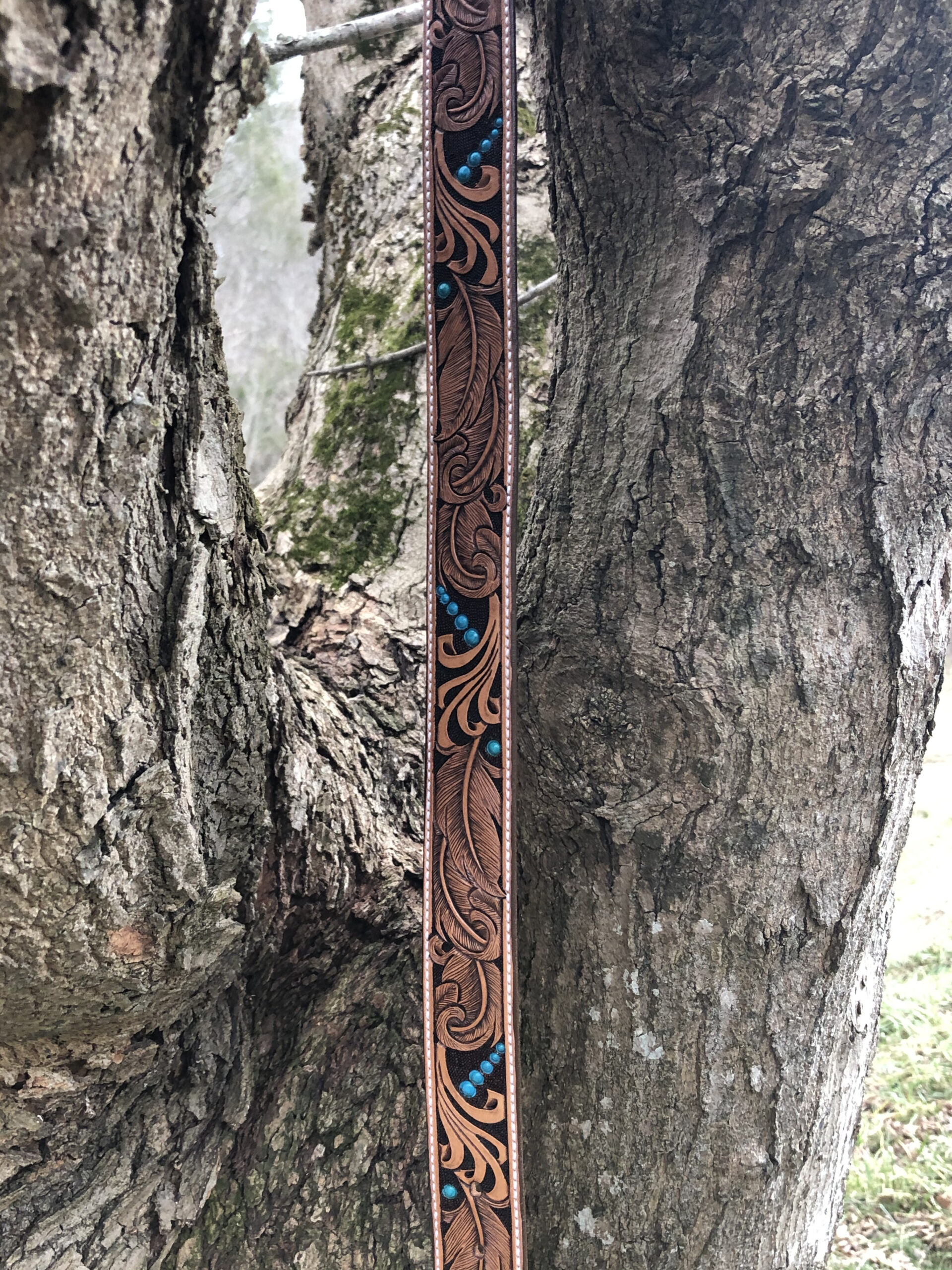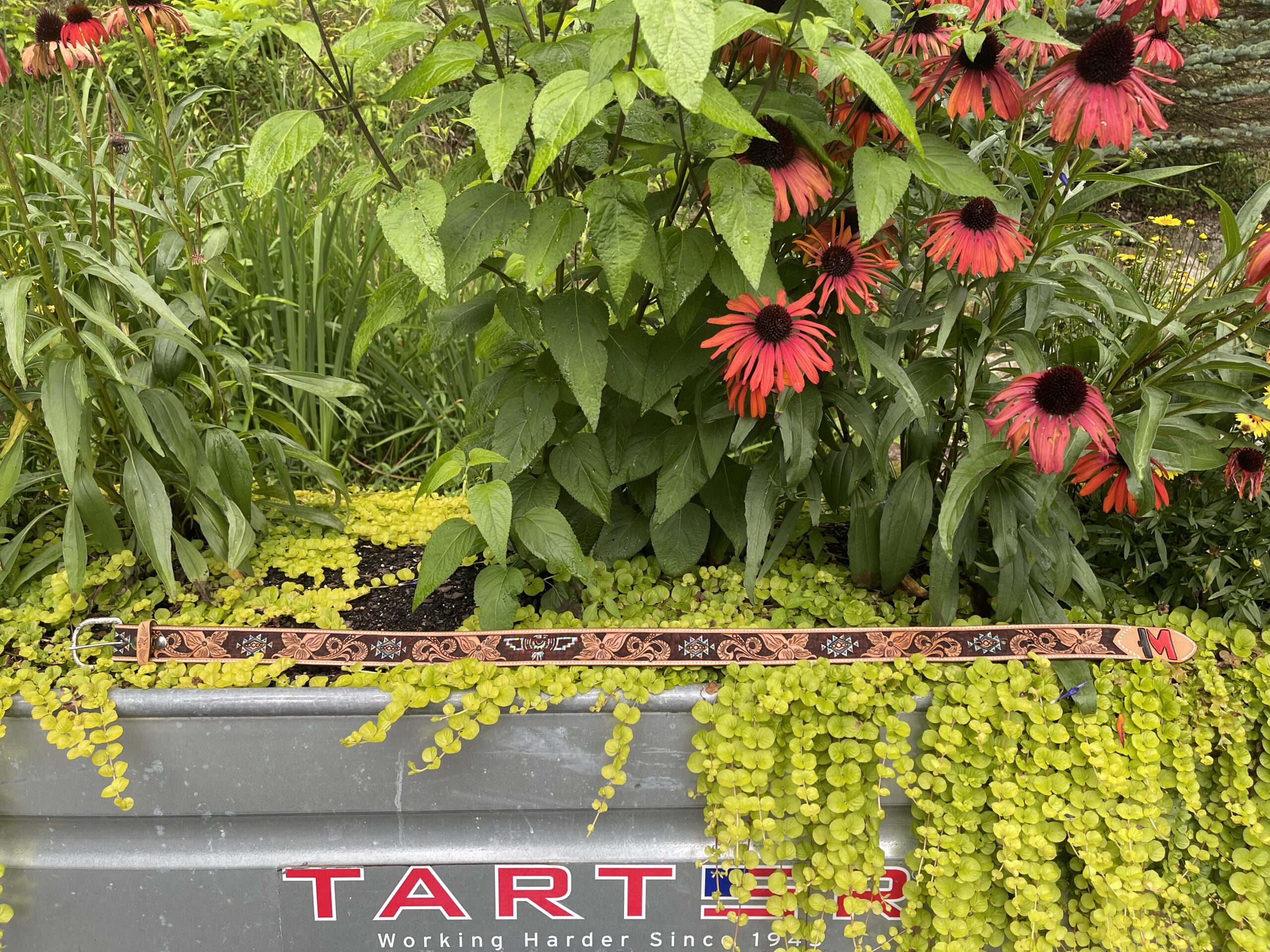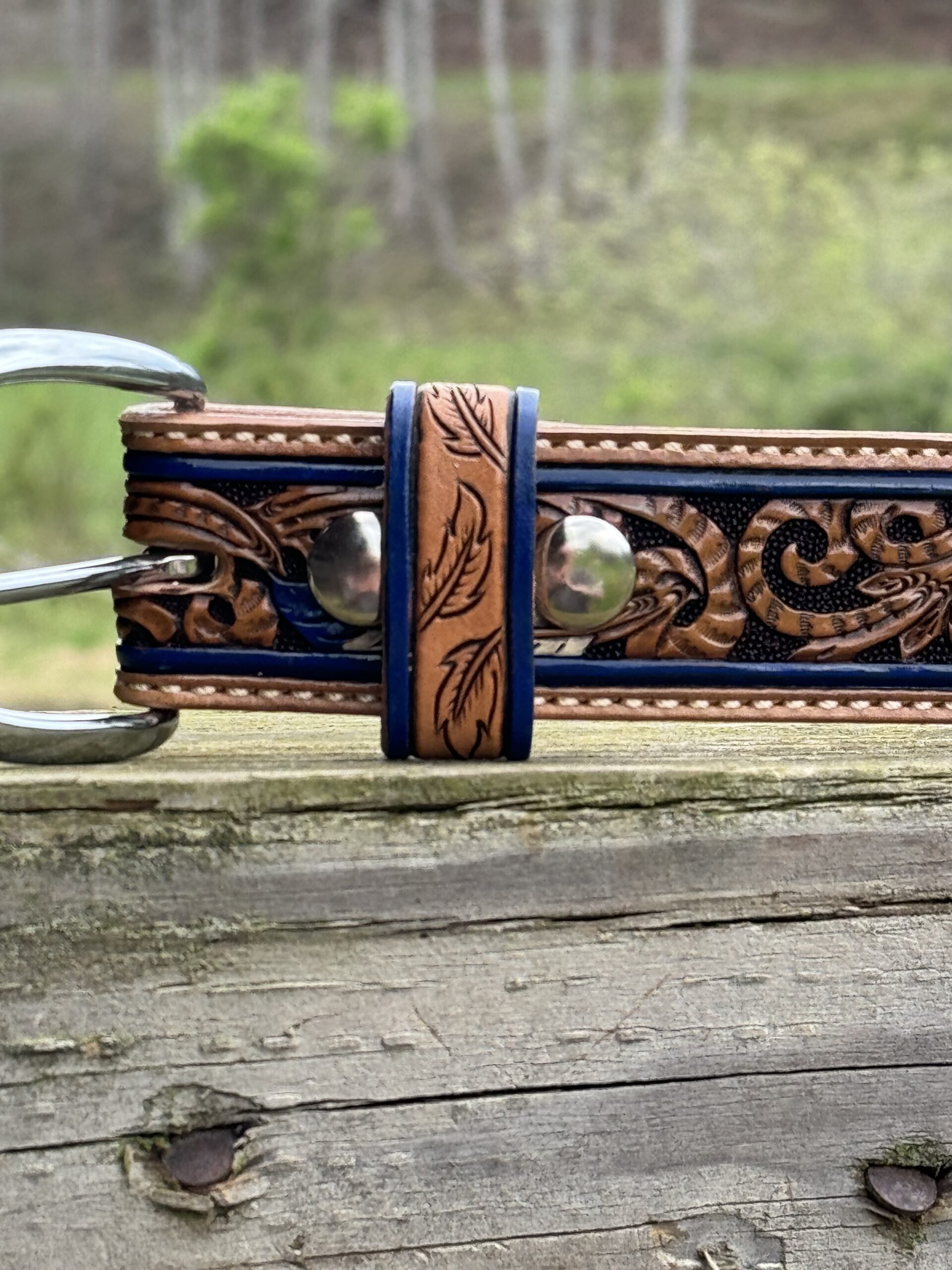 The Works!! Custom tooled belts with stitching and western style buckle.