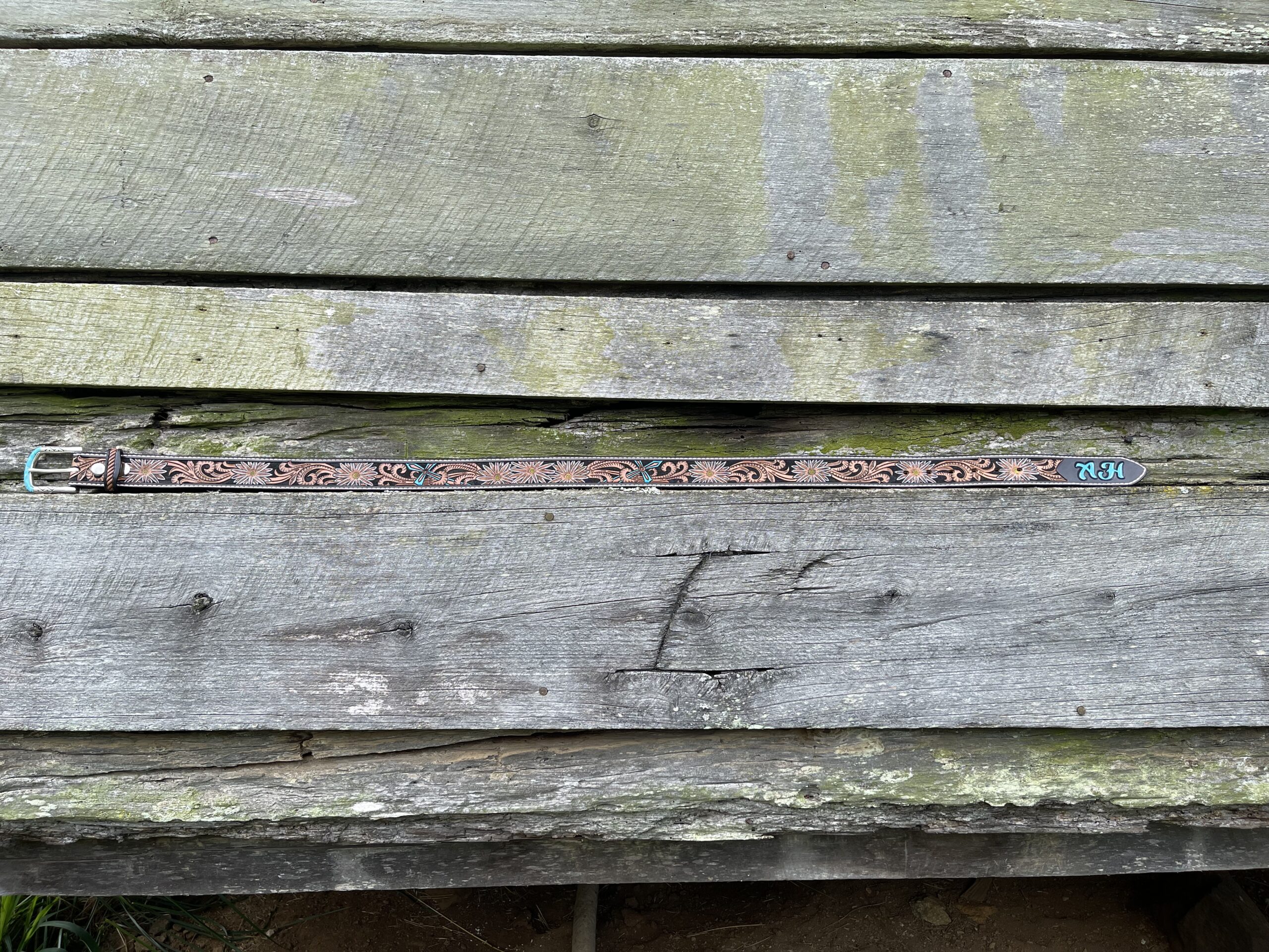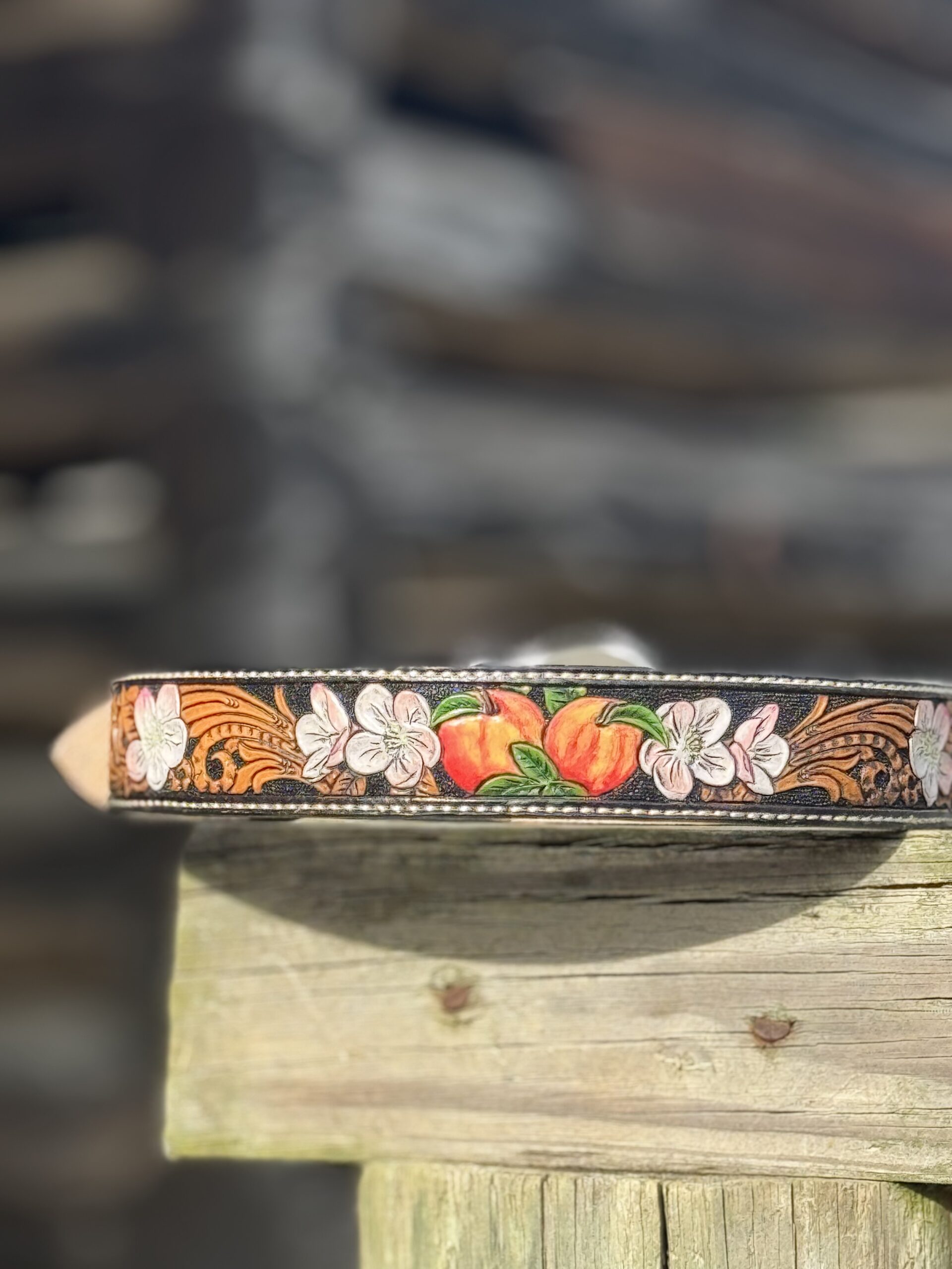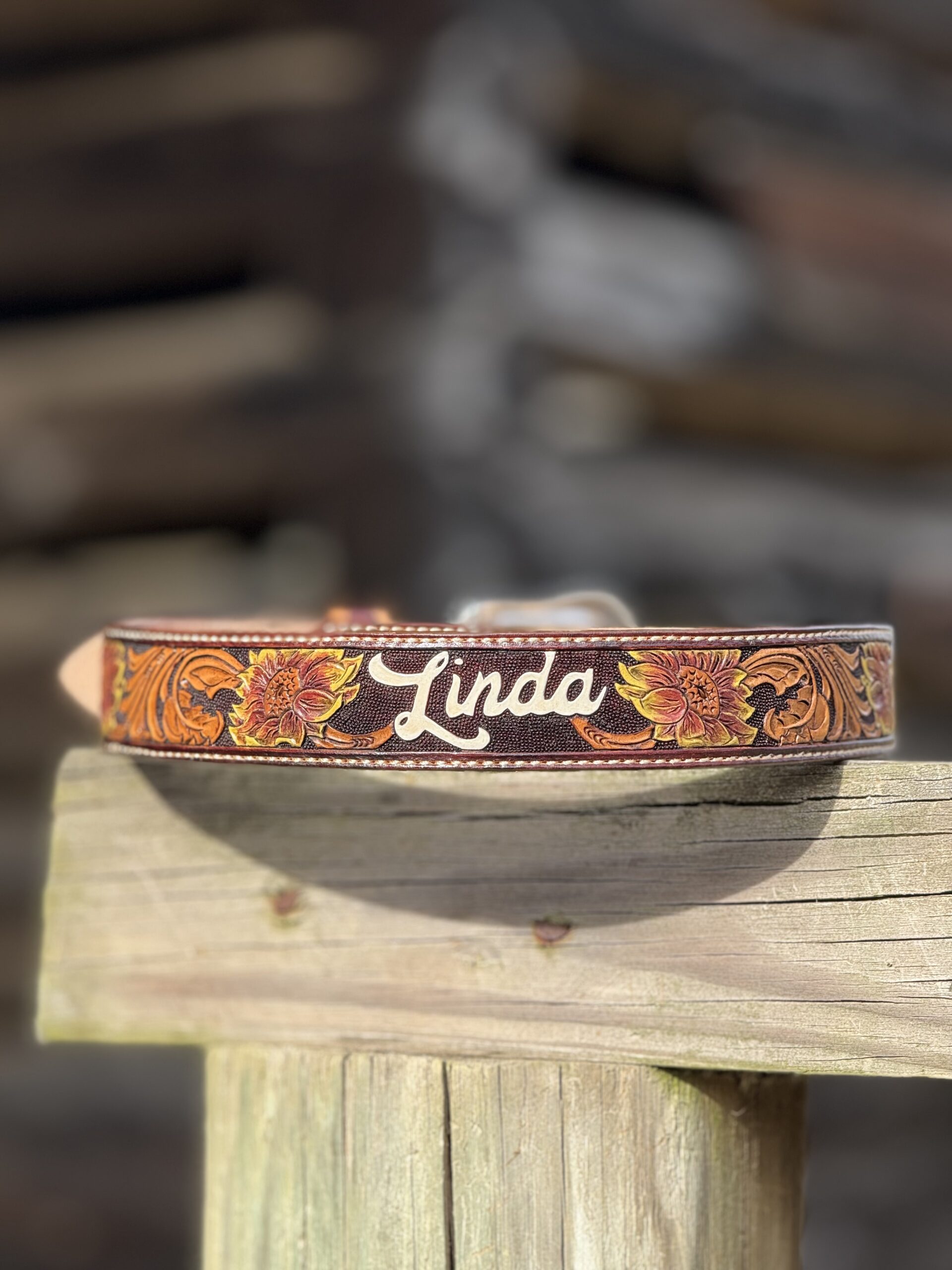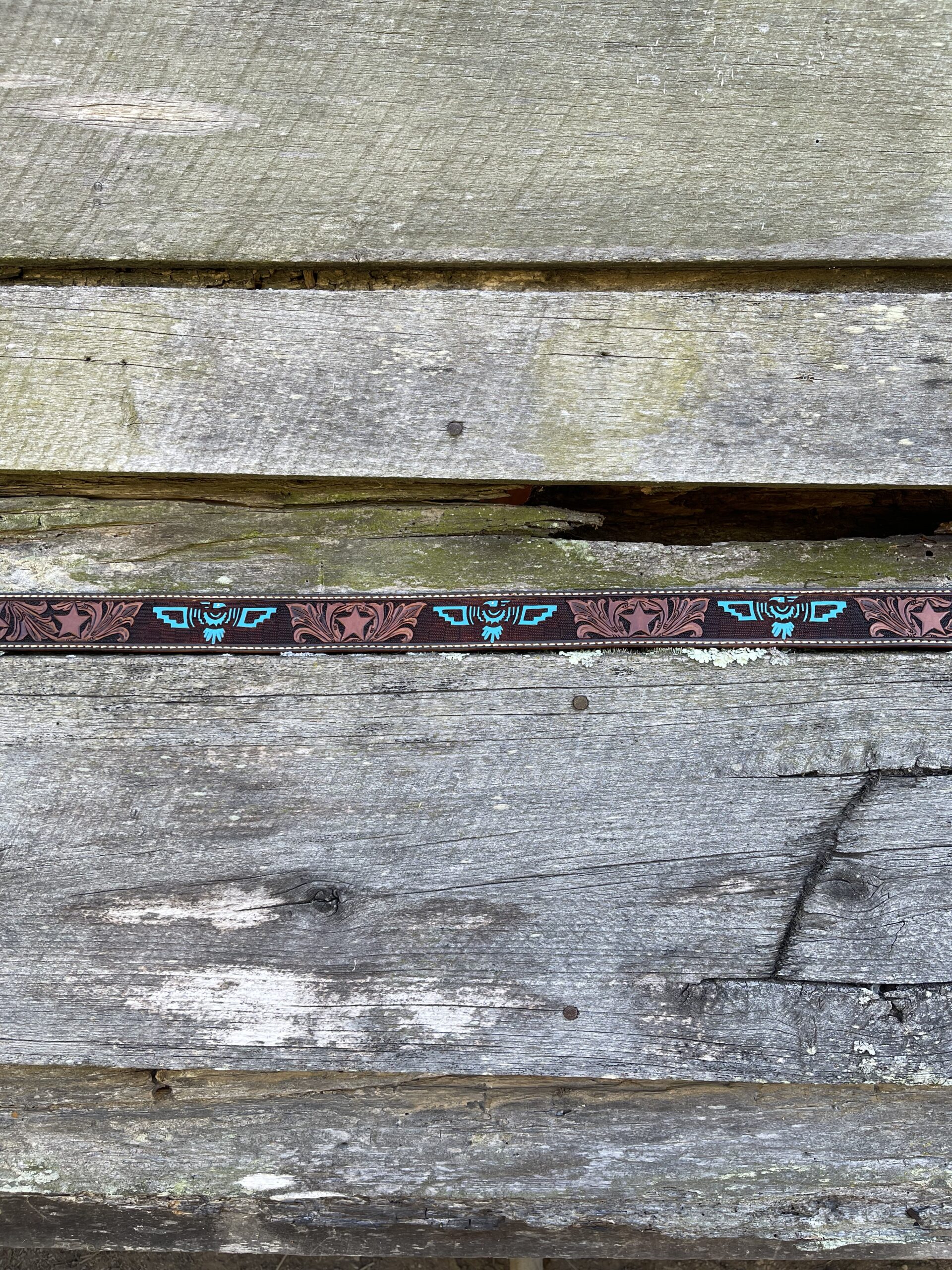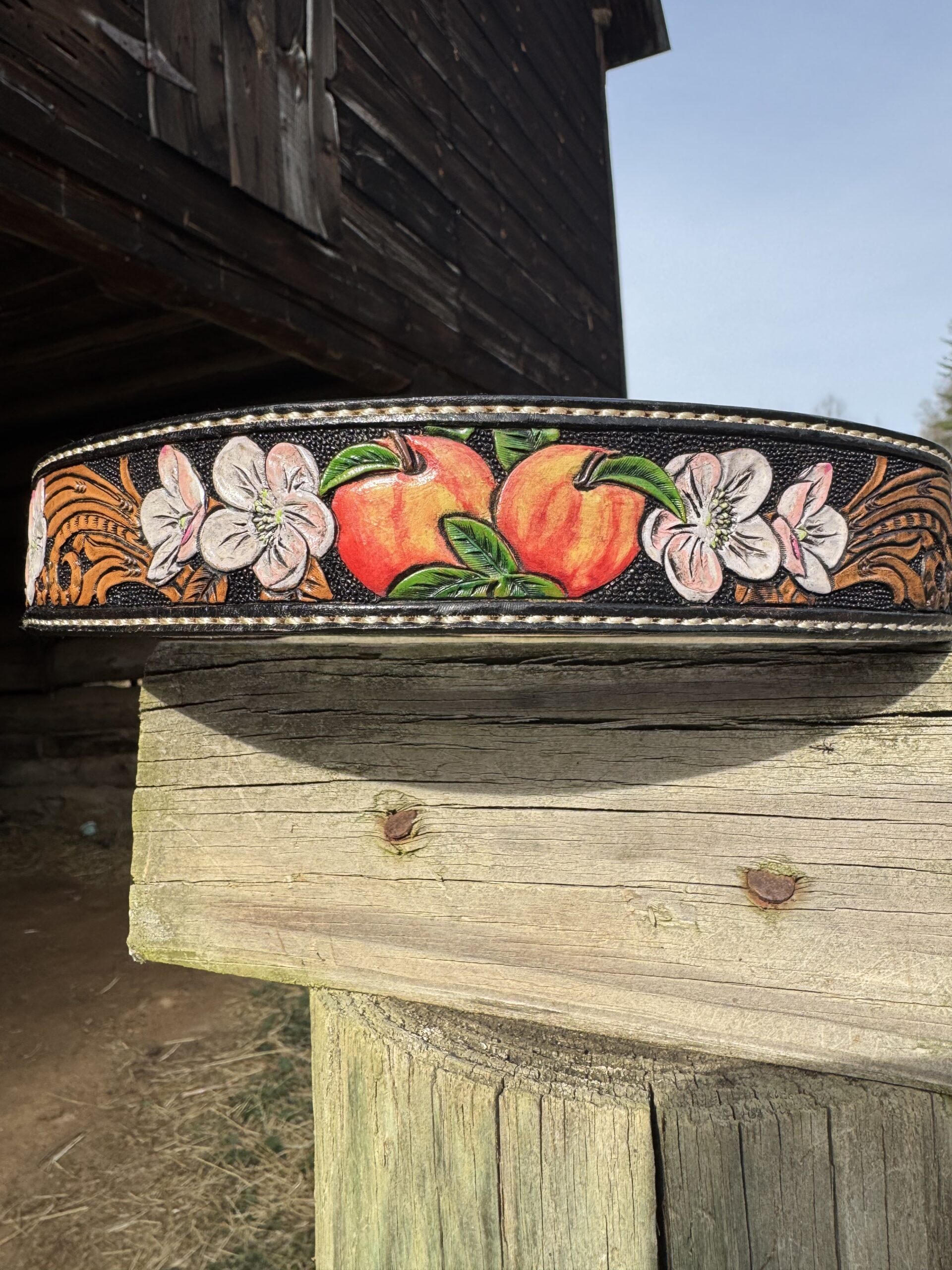 The Works!! Custom tooled belts with stitching and western style buckle.