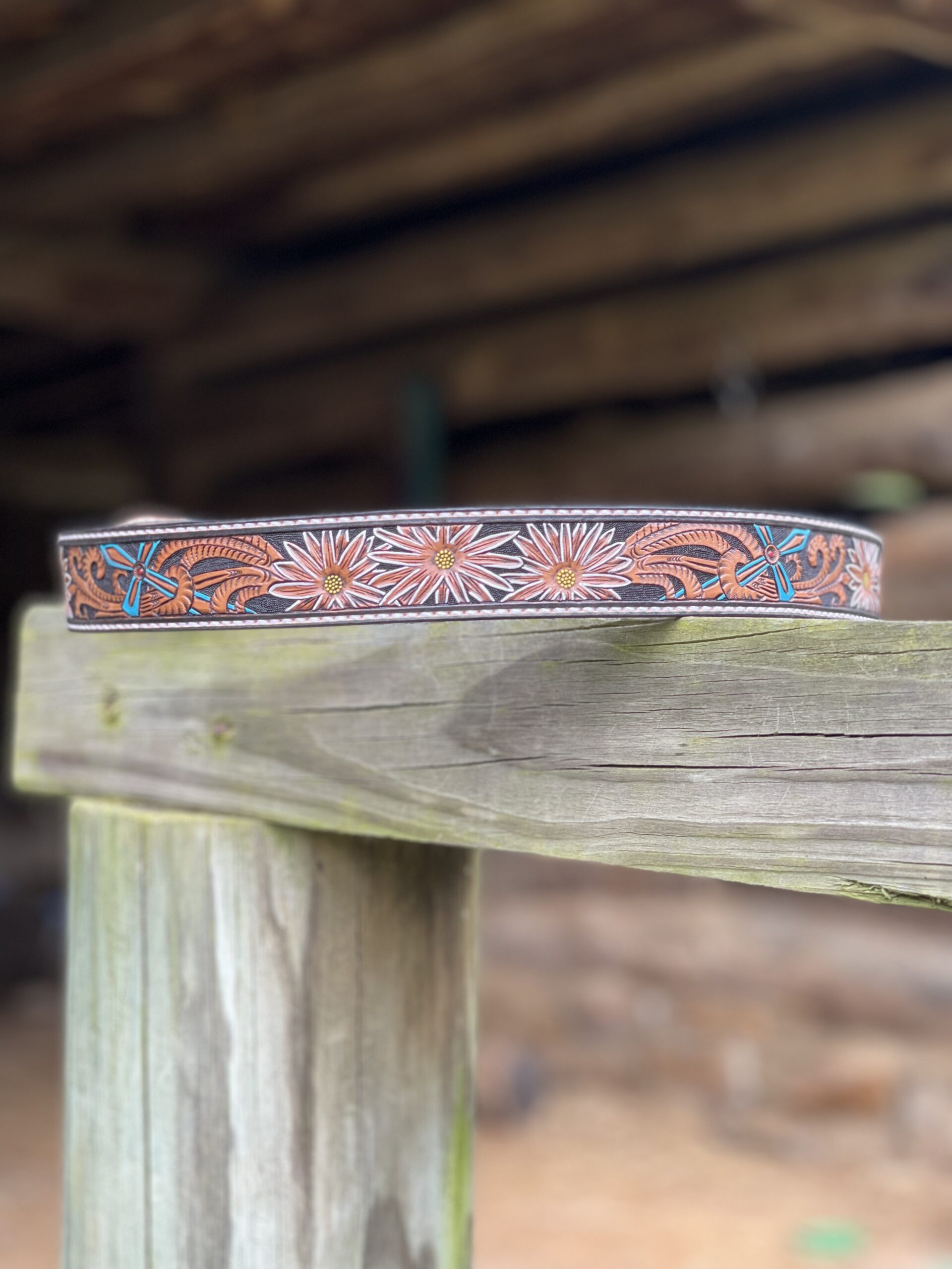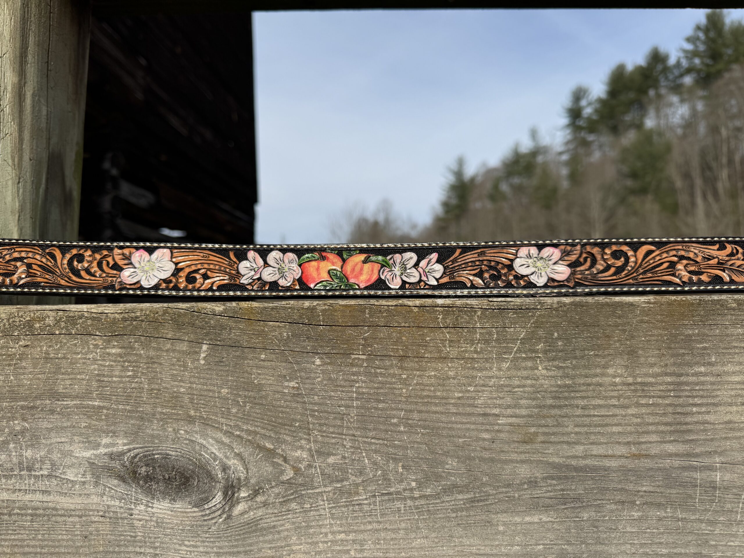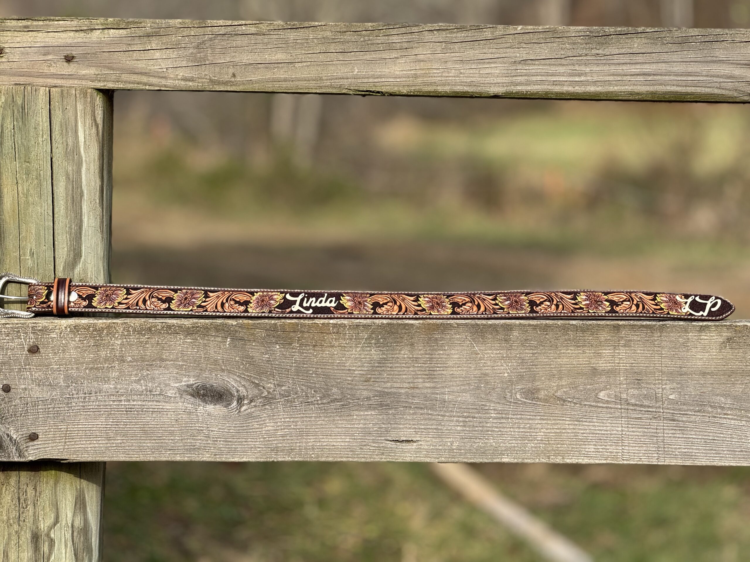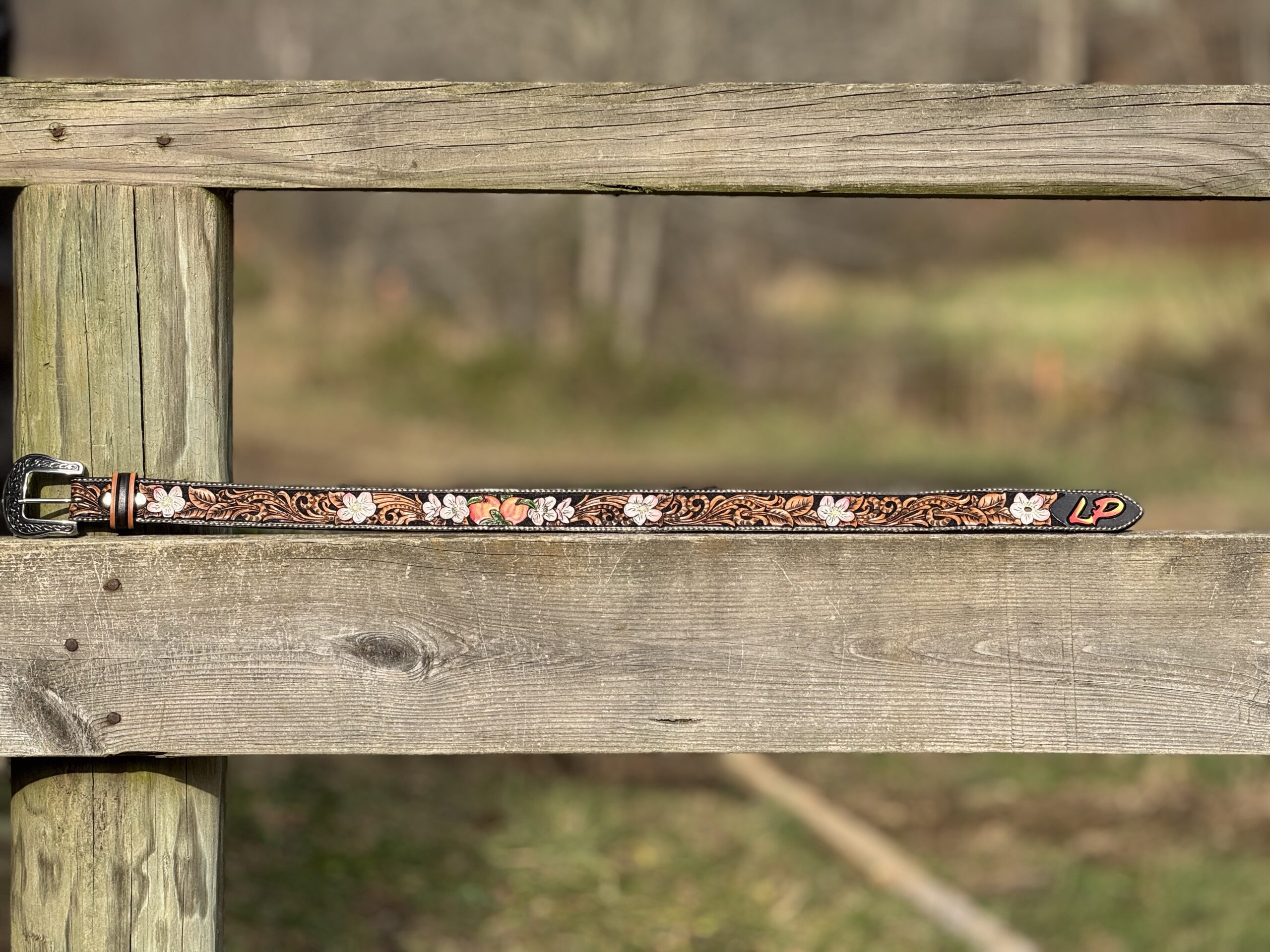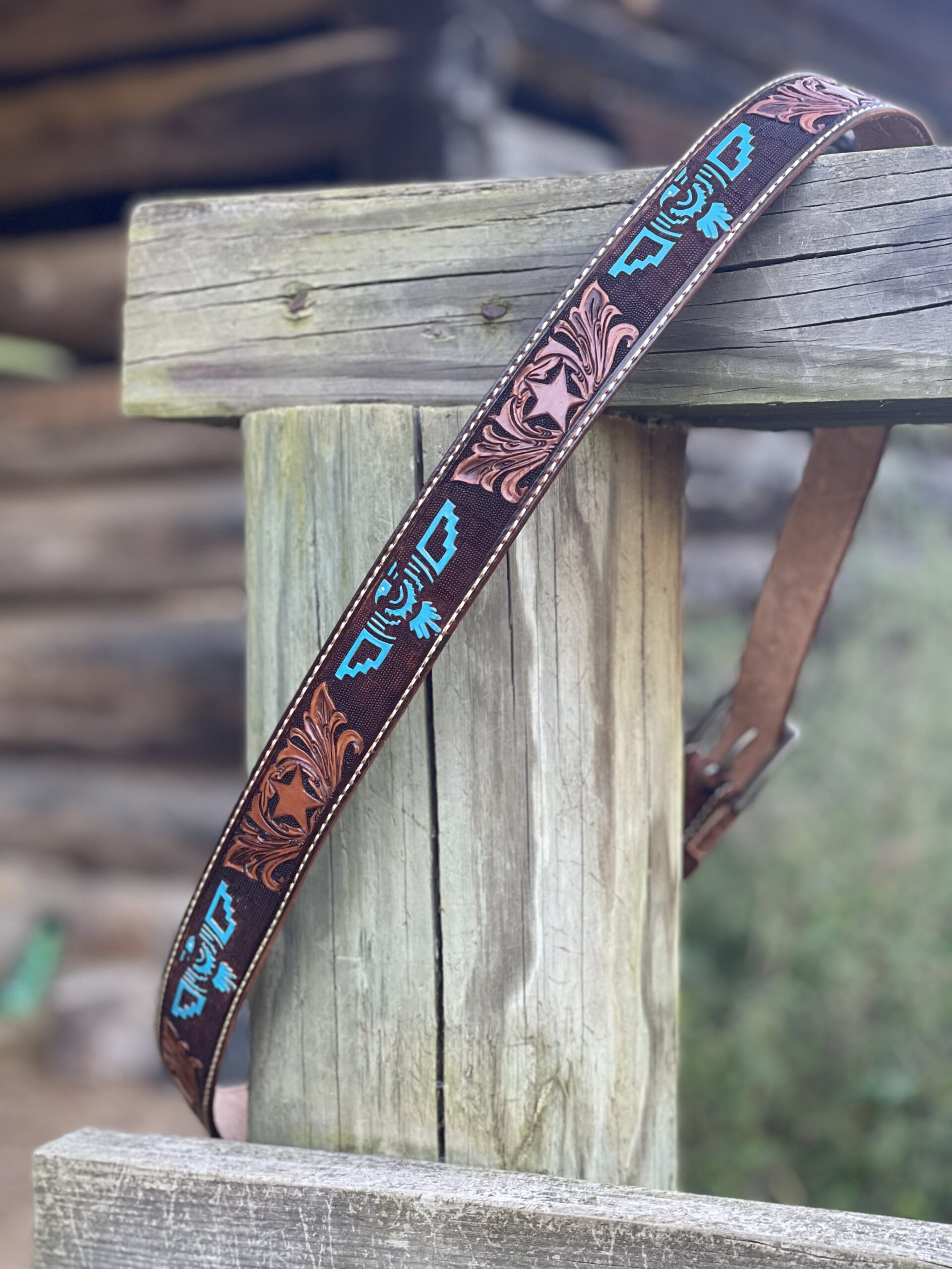 Painted Custom Tooled Leather Belts w/Stitching & Western Buckle